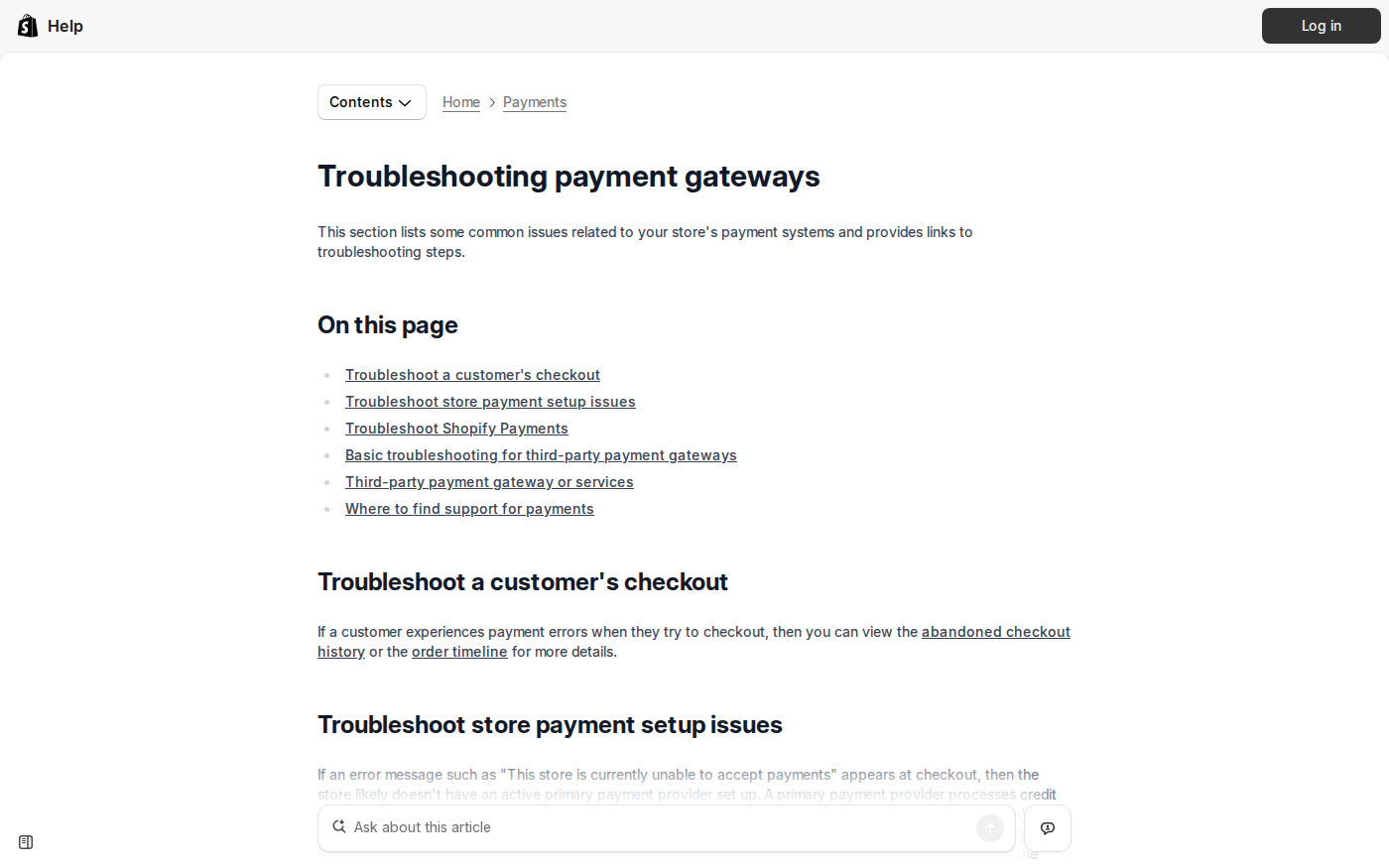payment gateway troubleshooting documentation — Official resource for payment-related checkout problems