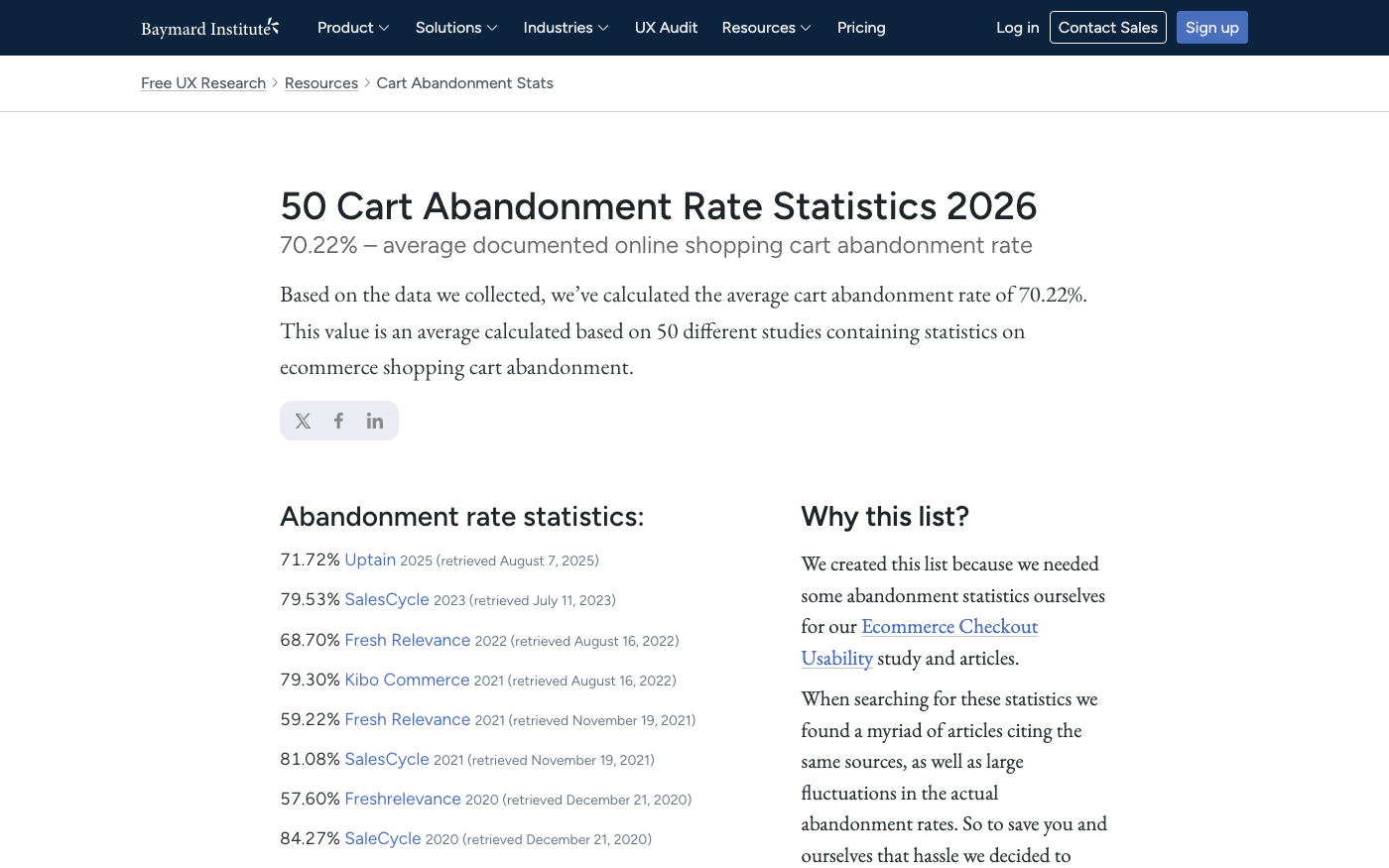 "Unexpected costs and uncertainty are still leading abandonment drivers." — Baymard Institute